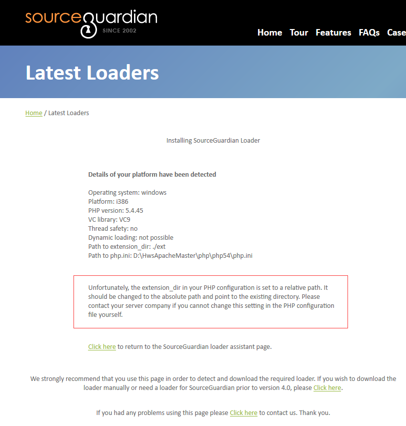 SourceGuardian 不兼容的加载程序版本。此受保护的脚本是用更新版本的sourceguardian编码的。请下载并安装最新的加载程序。中的错误代码[19]